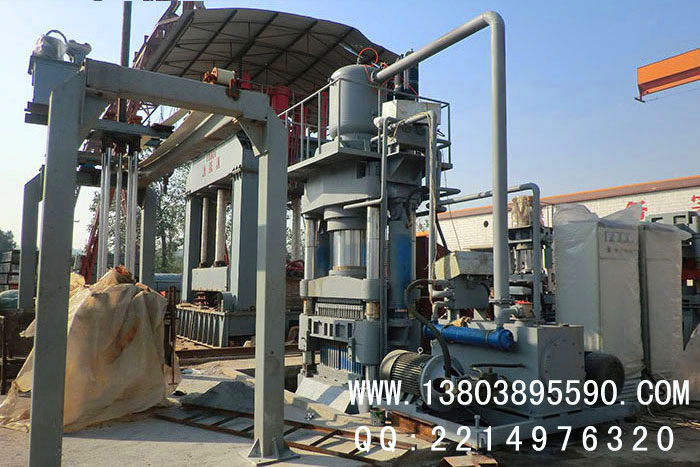原料處理完之后,料箱里的物料經(jīng)過推拉缸的作用在主機(jī)??蚶飦砘匾苿?dòng),提高物料的均勻度,由主機(jī)高壓壓制成型,成型后由機(jī)械手直接碼垛至蒸養(yǎng)小車。
